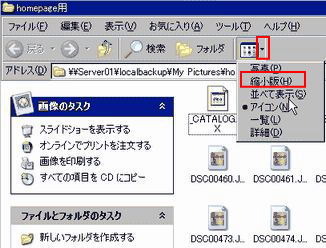 画像ファイルを開いたらツールバーの「表示」を選択して「縮小版」か「写真」を選択すると画像を確認することが出来ます。