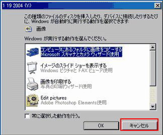 以下のような画面が表示されたら、今回は使用しないので「キャンセル」ボタンを押して終了させて下さい。