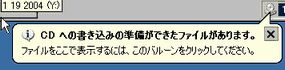 3、デスクトップ上にあるタスクバーに以下のようなメッセージが表示されたら、そのバルーンをクリックします。
