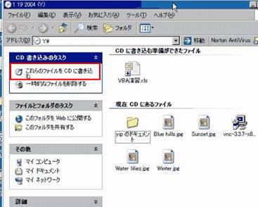 画像又はデータファイルをCD-Rにコピーする(CD書き込みウィザード XP編)