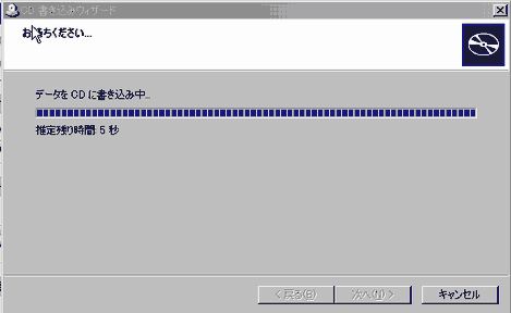 下の画面はCDに書き込み中の様子です。