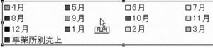 (<行>を選択すると X軸に「月別」が表示されます。)