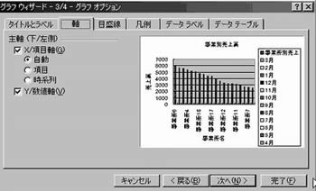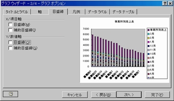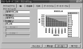 5. グラフウィザード3/4 <グラフオプション>の画面では、様々な設定を行うことが出来ます。