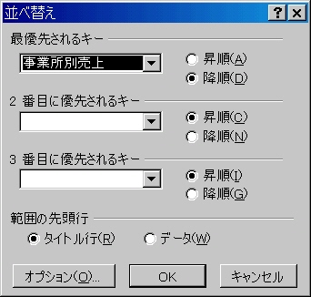 1.メニューバー「データ」「並び替え」の「並び替え」画面より