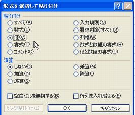 値のみ、コピーするには、「形式を選択して貼付け」を利用します。