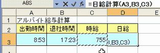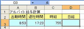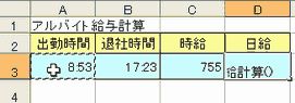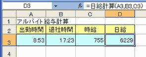 以下のサンプルは、退社時間から出勤時間を引いて勤務時間を求め、それに時給を掛けて、日給を求めるユーザー定義関数です。