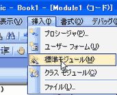 2、 メニューから[挿入]-[標準モジュール]をクリック