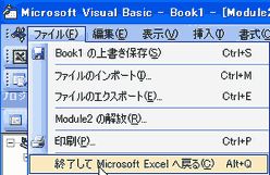 4、「ファイル」「終了してMicrosoft Excel」に戻る」をクリックし Visual