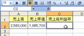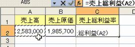 サンプルでは、売上総利益率を求めいる計算式を作成します。