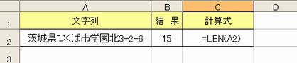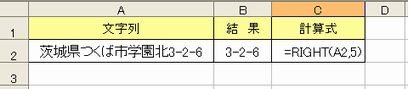 文字列操作関数左から何文字かを切り出す(LEFT関数)書式 LEF(文字列,文字数) ●LEFT 関数は、「文字列」の左端から指定された数の「文字数」を取り出します。 文字列 取り出す文字を含む文字列を指定します。 使用例 =LEFT(A1、3) <-----「B2」に入力する計算式 解説 文字列の途中の部分を取り出す(MID関数)書式 MID(文字列、開始位置、文字数) ●MID関数は、「文字列」の中から「開始位置」を指定した位置から、「文字数」で指定した数の文字列を取り出します。 文字列 取り出す文字を含む文字列を指定します。 使用例 =MID(A2、4、4) 解説 文字列を右から取り出します。(RIGHT関数)書式 RIGHT(文字列、文字数) ●RIGHT 関数は、「文字列」の右端から指定された数の「文字数」を取り出します。 文字列 取り出す文字を含む文字列を指定します。 使用例 =LEFT(A2、5) <-----「B2」に入力する計算式 解説 文字数を数える(LEN関数)書式 LEN(文字数) ●LEN関数は、指定した文字列が全部で何文字かを数えます 文字列 文字列を指定します。 使用例 =LEFT(A2) 解説 指定した文字が何文字目かを調べる(FIND関数)書式 FIND(検索文字列、対象、開始位置) ●FIND 関数では、指定された文字列 (検索文字列) を他の文字列 ( 対象) の中で検索し、その文字列が他の文字列内で最初に現れる位置を左端から数え、その番号を返します。 検索文字列 検索する文字列を指定します。(文字列を指定する場合は、「” ”」で文字を囲んで指定します。 使用例 =FIND(”県”、A2) (文字列の中で、県は、何番目にあるかを調べます。) 解説 空白の削除(TRIM)トリム関数書式 TRIM(文字列) ●文字列に複数のスペースが連続して含まれている場合、単語間のスペースは1つ残して、文字列の前後の不要なスペースは、すべて削除します。TRIM 関数は、ほかのアプリケーションから読み込んだテキストに不要なスペースが含まれているときなどに使用します。 文字列 余分なスペースを削除する文字列を指定します。 使用例と解説 : 文字列の一部を置換えする(SUBSTITUTE)サブスティチュート関数書式 SUBSTITUTE(文字列,検索文字列,置換文字列,置換対象) 文字列中の指定された文字をほかの文字に置き換えます。SUBSTITUTE 関数は、文字列中の特定の文字を置き換えるときに使用します。文字列中の特定の位置にある文字をほかの文字に置き換えるときは、REPLACE 関数を使用します。 文字列 置き換える文字を含む文字列を指定します。目的の文字列が入力されたセル参照を指定することもできます。 使用例と解説 全角文字を半角にします。(ASC)アスキー関数書式 ASC(文字列) 「文字列」内の全角文字を半角にします。 使用例 =ASC(A2) 半角文字を全角にする(JIS)ジス関数書式 JIS(文字列) 「文字列」内の半角文字を全角にします。 使用例 =JIS(A2) データを結合する &書式 値1&値2 「値1」「値2」に指定した文字列や値を結合して、1つの文字列を作ります。 使用例 =A2&B2 戻る|進む |