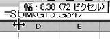 列幅の変更方法は、下の画像のように、列の境界線上にカーソルを移動してからドラックして表示される「幅の数値」を見ながら行います。