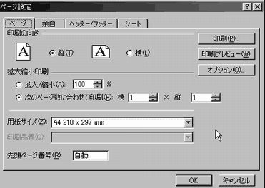 ◆「ページ設定」の画面を開き「余白」タブをクリックし、余白の値を小さくします。