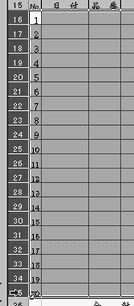 ◆16行目から35行目まで選択して(行番号の上をドラックして選択します。)右クリックし、「行の高さ」を選択し「18」と入力します