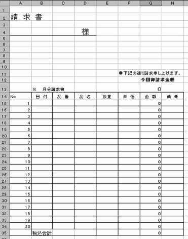 挿入する位置は、「下記の通り請求申し上げます。」の上に配置します。