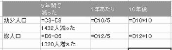 今回は、10年後ですから、10倍すると10年後の減少割合が計算されます。