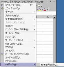 3.確定した文字を選択して「ツール」「ウィザード」「郵便番号変換」を選択します。