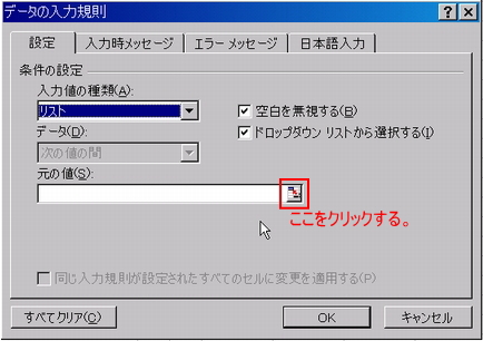 7.するとデータ入力規則の画面の中に、リスト範囲が入力されます。