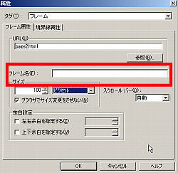 2.「属性」の画面から「フレーム属性」タブをクリックします。
