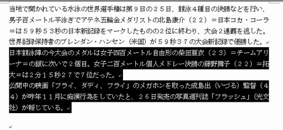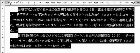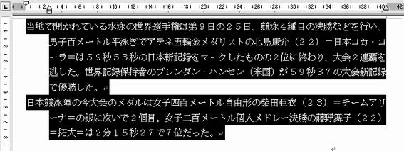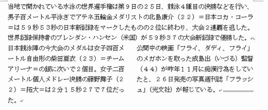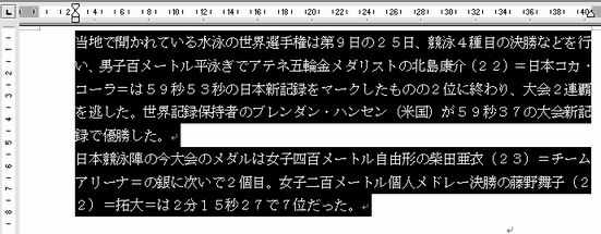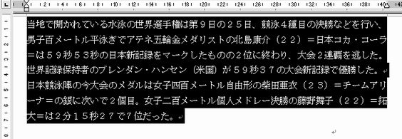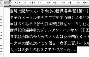 | 文書の最後の部分を段組みにしようと、段組する範囲を選択して、「段組」を行うと |