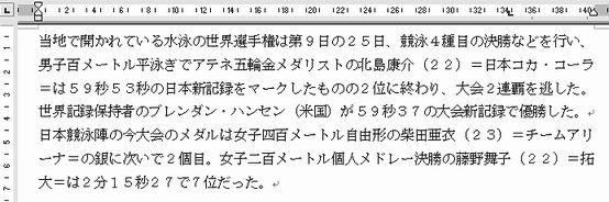 文書の最後の部分に段組を設定すると、段組の終了位置にセッション区切りが挿入されないので、目的の段数に区切ることができません、この場合は、文章の最後にもセッション区切りを挿入します。