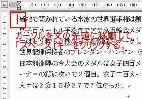 段落の1行目の先頭や2行目の先頭にカーソルを移動して、「スペース」キーを押すだけで、簡単にインデントを設定することができます。