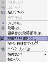 2. 表れたショートカットメニューから「縦書きと横書き」を選択します。