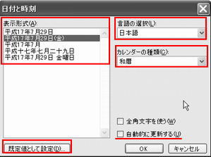 よく使う形式を規定値に設定しておけば、日付の形式を選ぶ手間も省けます。