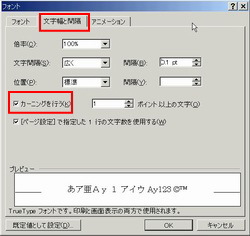 カーニングは、TrueType フォントが設定されている文字列にのみ使用できます。