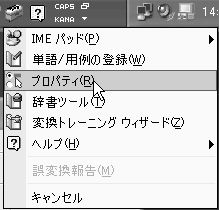 IMEツールバーにある「ツール」をクリック表示されるメニューから「プロパティ」を選択します。