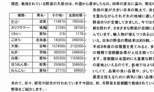 ■ワードの初期設定では、周辺の文章を変更すると、表も連動して動きます。表を宇賀かしたくないときは、設定を変更します。