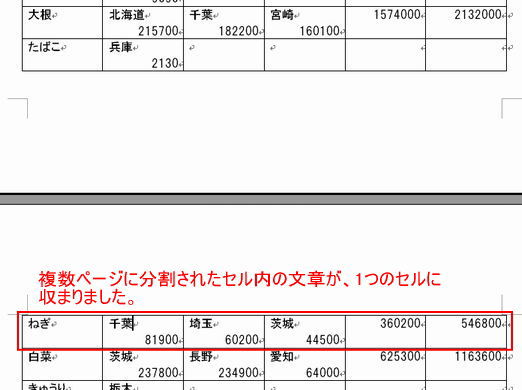 複数ページにまたがる表で、セル内の行が複数行の場合で、途中で改行しないようにするには、