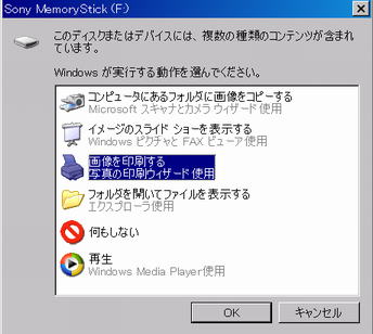 ※WinXPの場合は、自動的にカメラ・スキャナウィザードが立上がりますが、「キャンセル」をクリックし中止します。