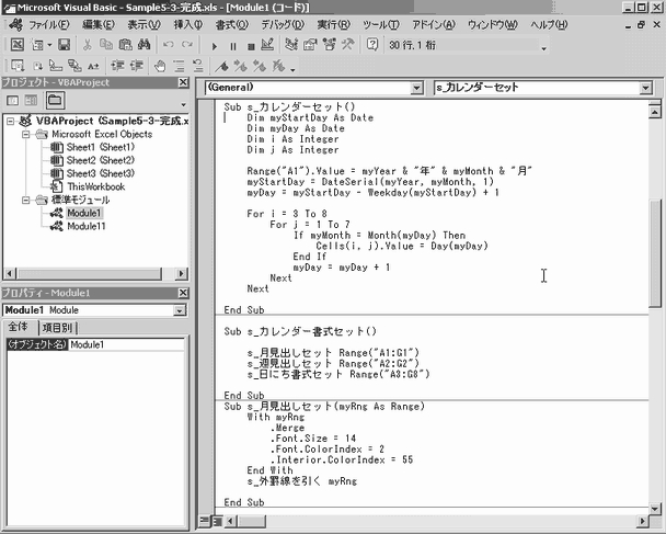 本文は、 マクロの本体です。SUB〜END SUBに囲まれた範囲にマクロが記述されます。